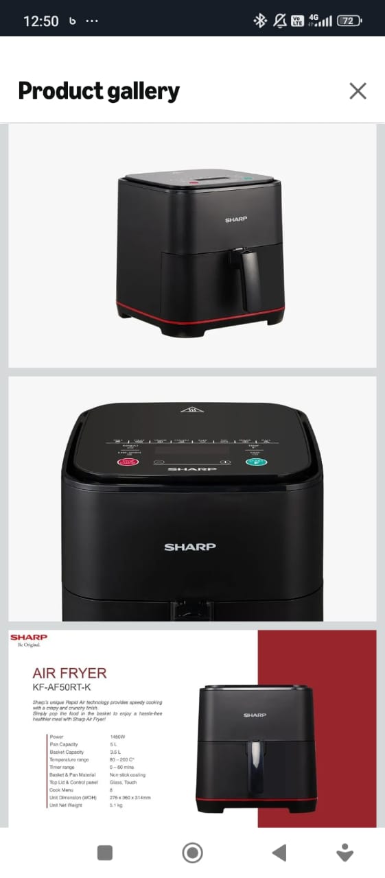 Discover the Sharp KF-AF50RT-K3 air fryer with 1450 watts power and 8 cooking programs.